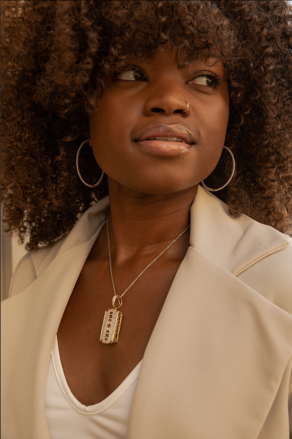 This distinctive pendant can complement any outfit and is suited for any gender, offering a versatile addition to your jewelry collection. Whether you're gifting it to a hair professional or wearing it as a symbol of your passion for styling, this razor pendant is sure to impress. With 48 interest-free payments of $55.19, it offers an accessible way to own a piece of jewelry that is as unique as it is beautiful. Embrace your love for the art of hair with this strikingly designed pendant.