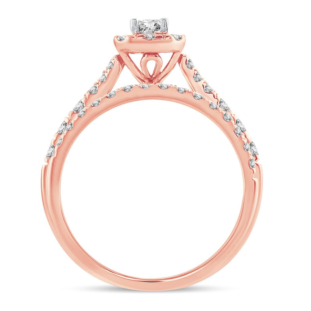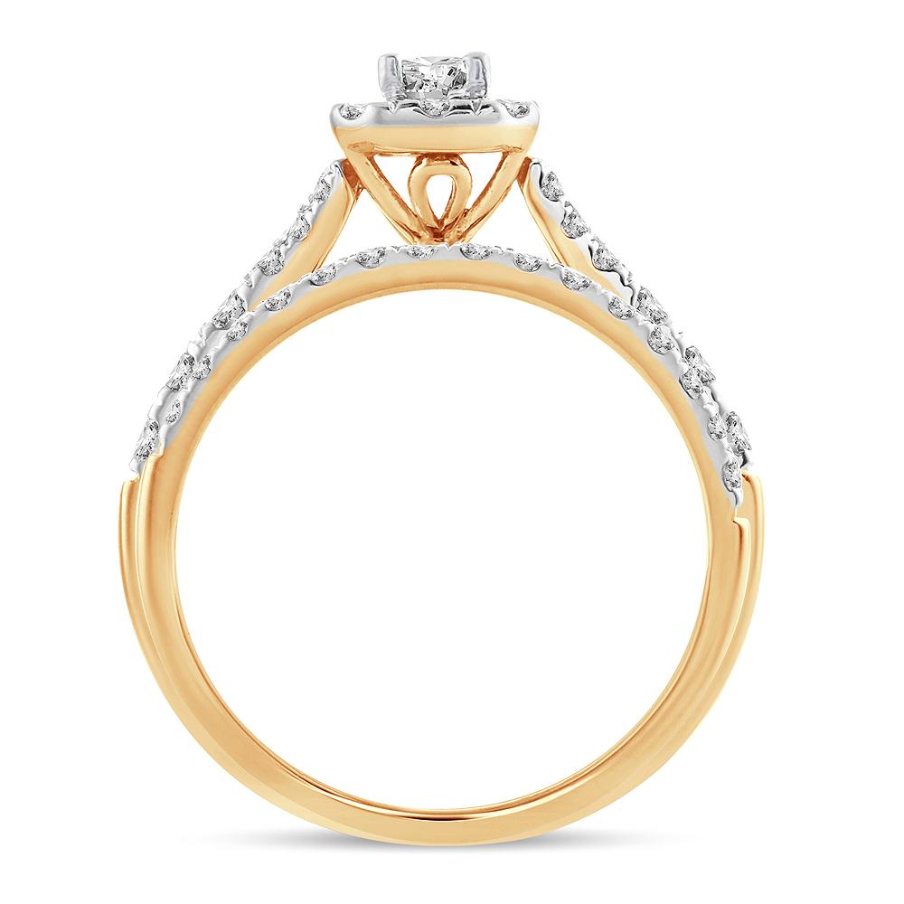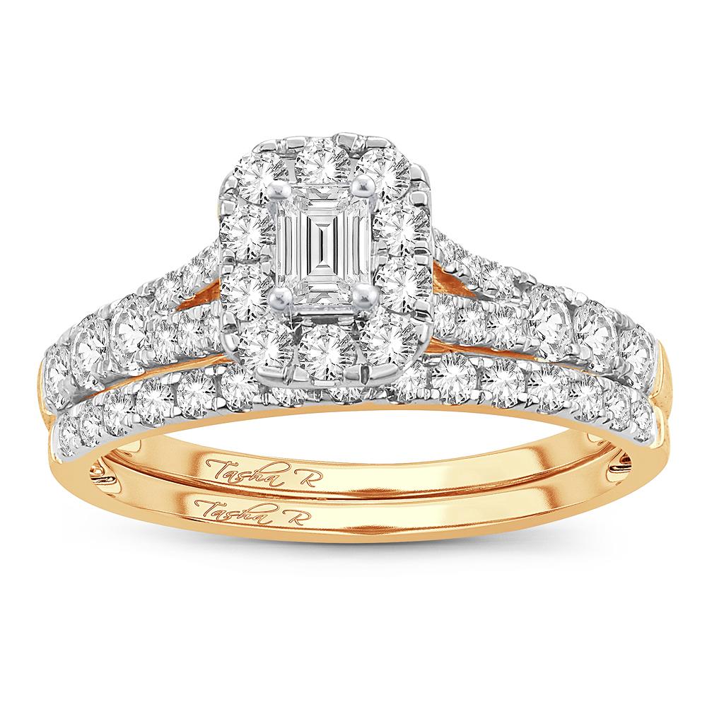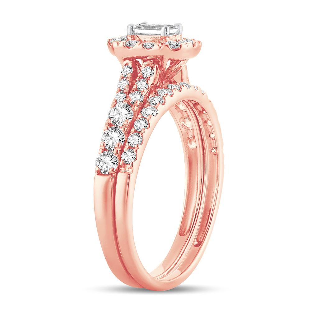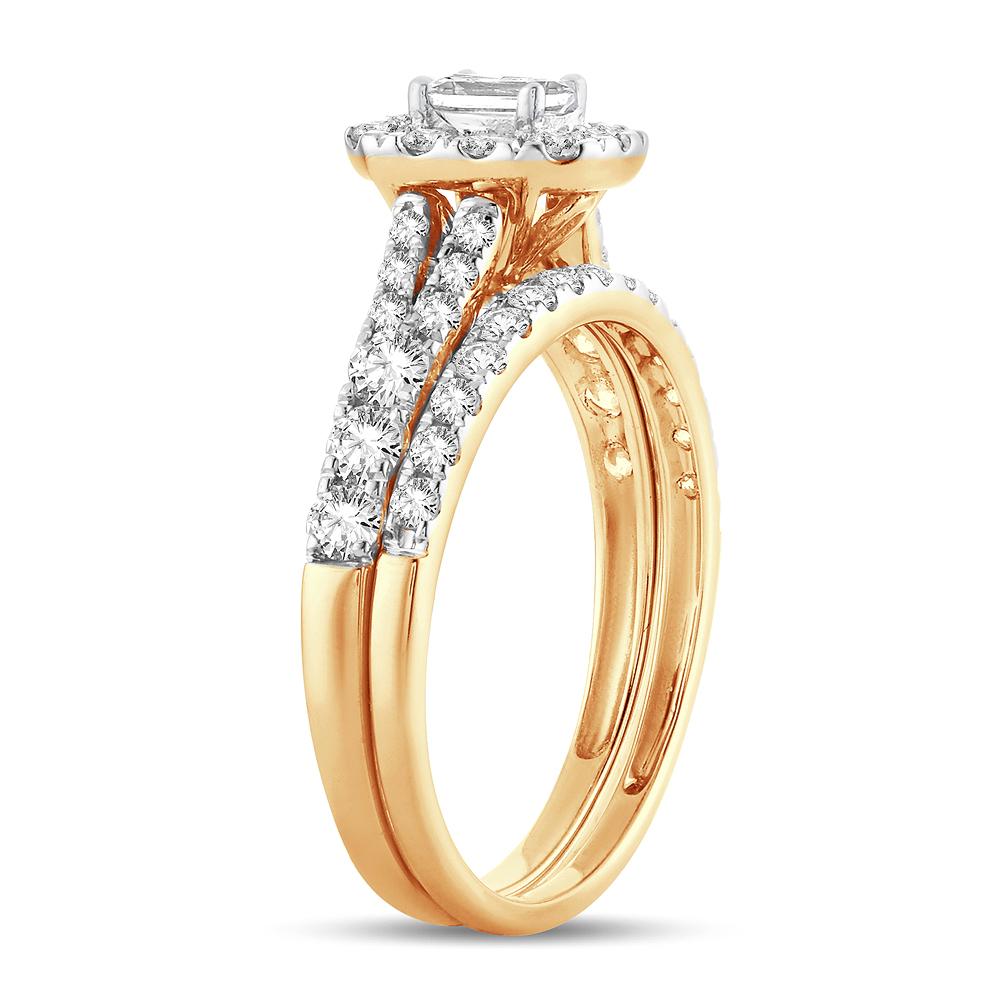 Discover the perfect symbol of your love with our Diamond Engagement Ring and Matching Band Set, beautifully crafted in 14KT Yellow or Rose Gold. This elegant set features a 1.00 carat total weight diamond, available in your choice of an oval or emerald cut. The stunning center stone is enhanced by a halo of sparkling diamonds, adding extra brilliance and depth to the design. The accompanying band fits seamlessly with the engagement ring, creating a unified and exquisite look. Each diamond is carefully selected for clarity (I1-I2) and color (H-I), ensuring a beautiful shine and consistency. With 48 interest-free payments of $46.87, this engagement ring and band set offers luxury and affordability, making it an ideal choice for couples ready to embark on a lifetime journey together.