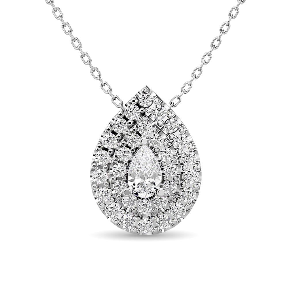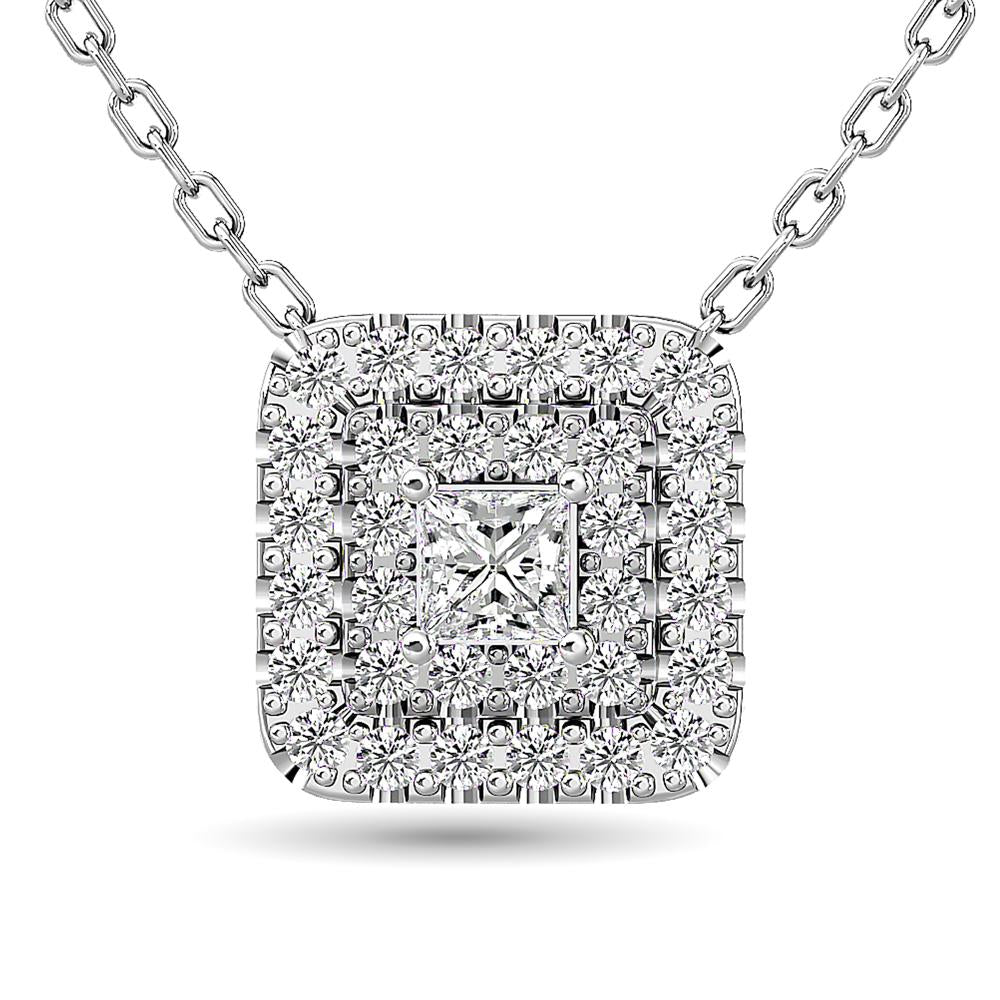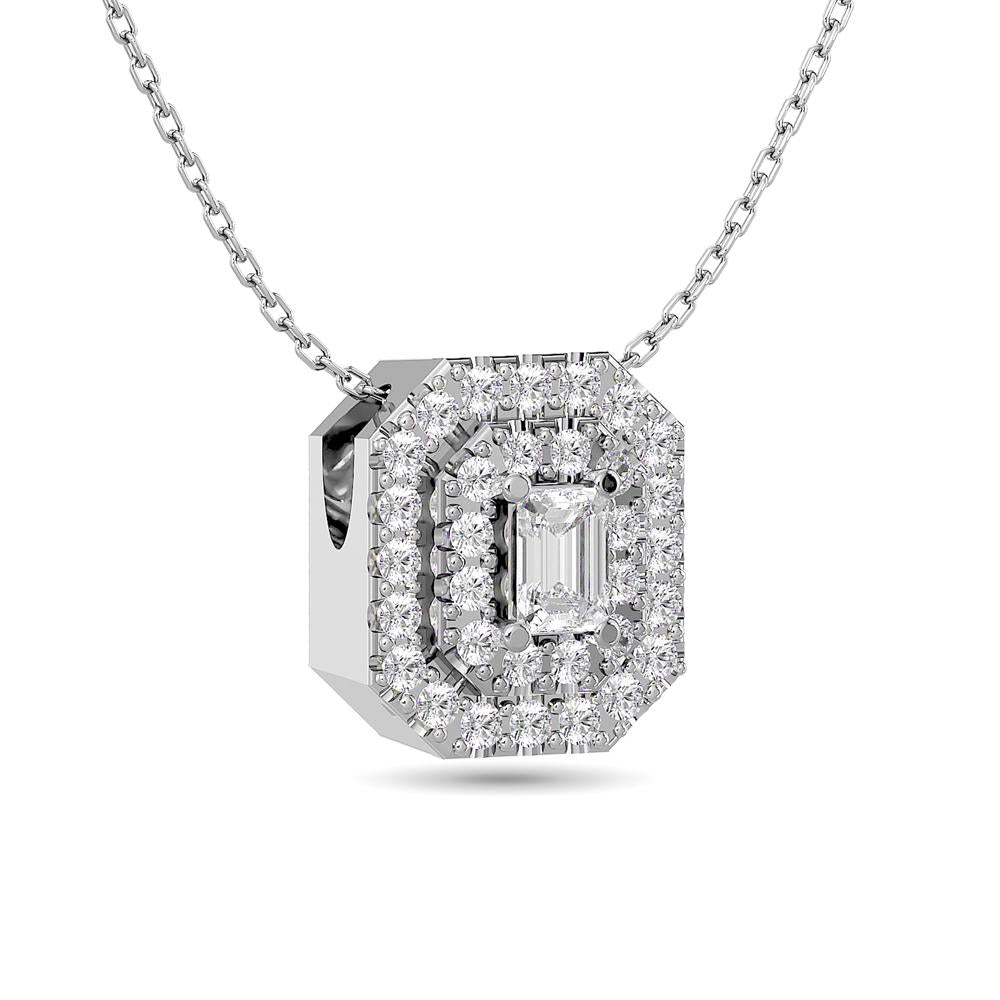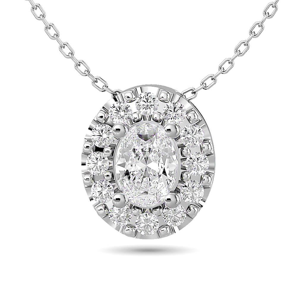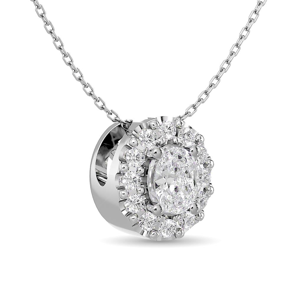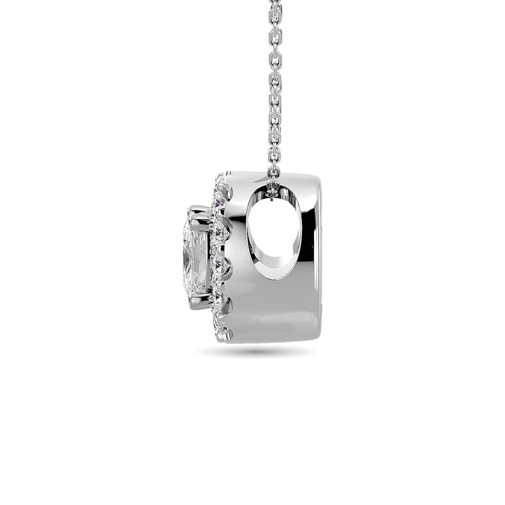 Our Diamond Halo Pendant in 14K White Gold is a stunning expression of elegance and commitment. This beautifully crafted pendant features a solitaire center stone available in multiple cuts including Round, Oval, Pear, Princess, and Emerald, each encircled by a radiant halo of round cut diamonds. The diamonds, totaling 0.25 or 0.37 carats, are carefully selected for their clarity (SI2-SI3) and color (G-H), ensuring a sparkling display that catches the eye. This pendant comes with a 14K White Gold chain, making it ready to wear or give as a thoughtful gift. Whether chosen for its beauty or as a symbol of commitment, this diamond halo pendant is perfect for adding a touch of luxury to any occasion. With 48 interest-free payments as low as $17.50, it offers an accessible way to own or gift a piece of timeless jewelry that's sure to impress.