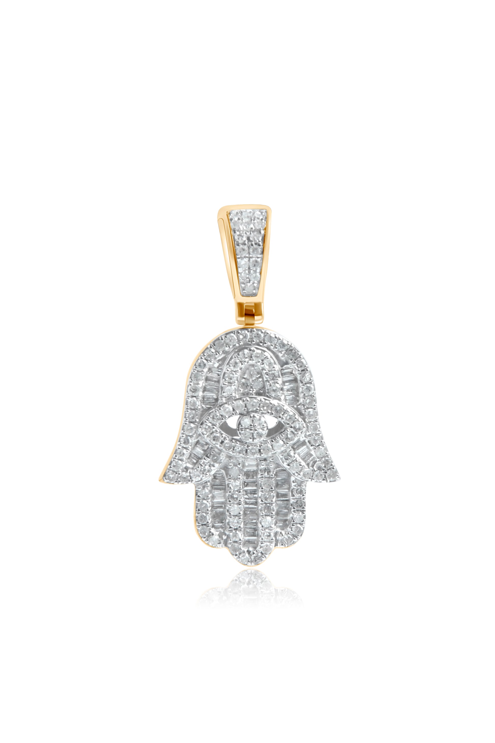 Diamond Hamsa with Evil Eye Pendant - 0.50 Carats in 14KT Gold