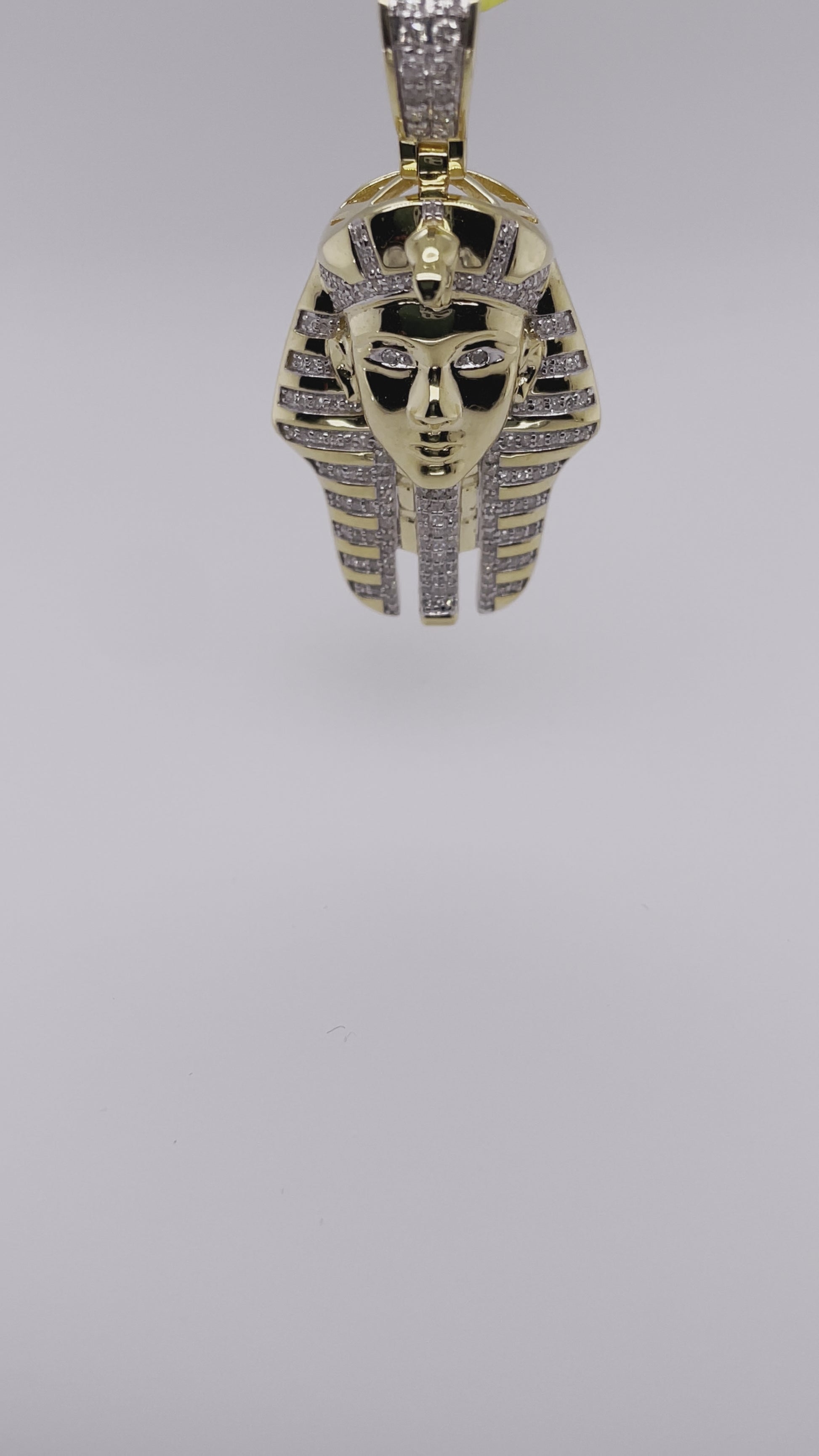 Each diamond is carefully selected for its clarity (SI2-SI3) and color (G-H), ensuring a radiant display of luxury and timelessness. This pendant is more than just a piece of jewelry; it's a tribute to one of history's most recognizable figures, making it a perfect gift for history enthusiasts or as a standout addition to any collection. With 48 interest-free payments of $28.17, this King Tut pendant offers an affordable way to own a piece of art that is both historical and beautifully crafted, suitable for wearing at formal events or as a daily expression of refinement and cultural appreciation.