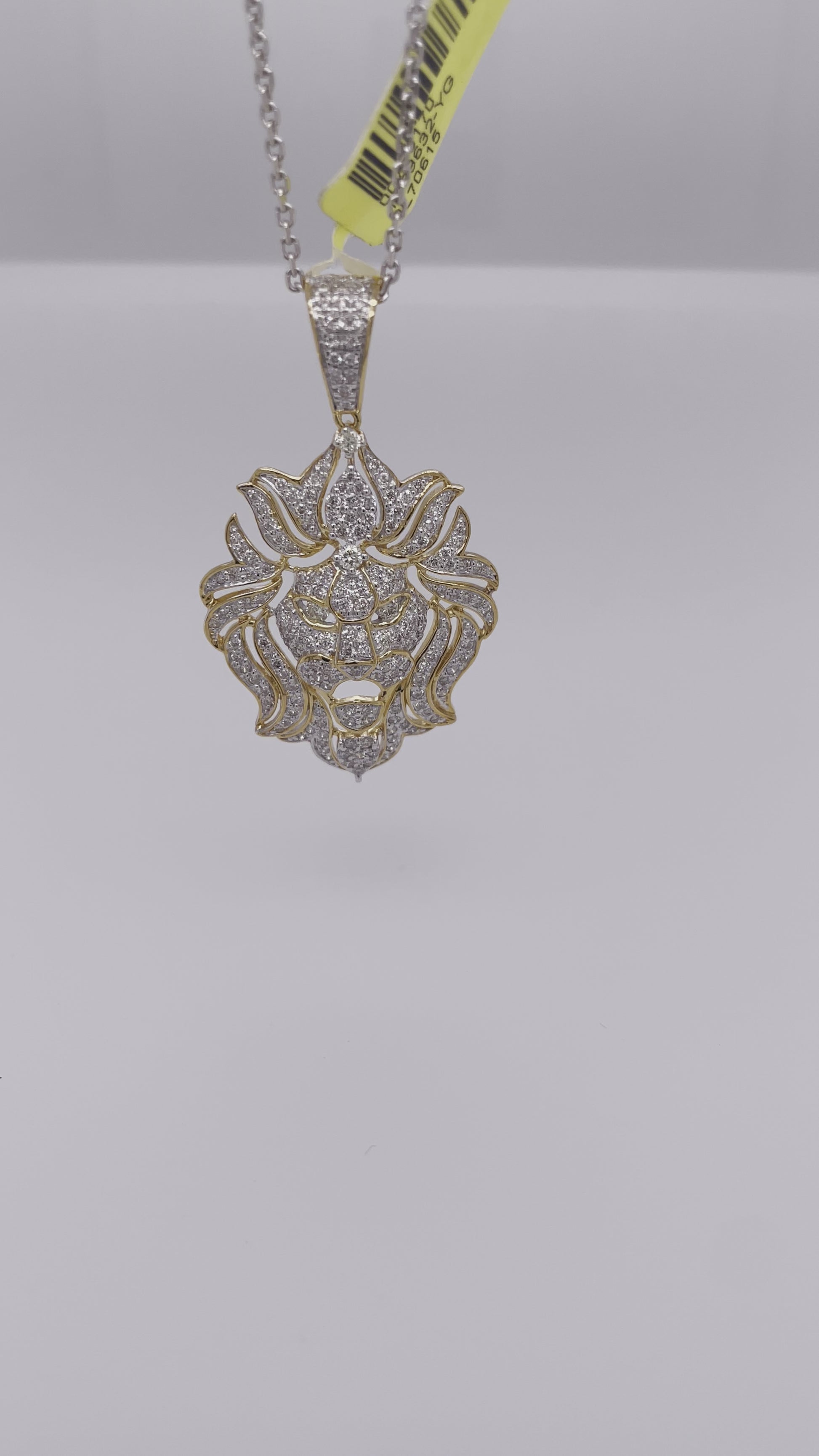 3-Tone Diamond Lion Head Cutout Pendant - 1.42 Carats in 10KT Gold