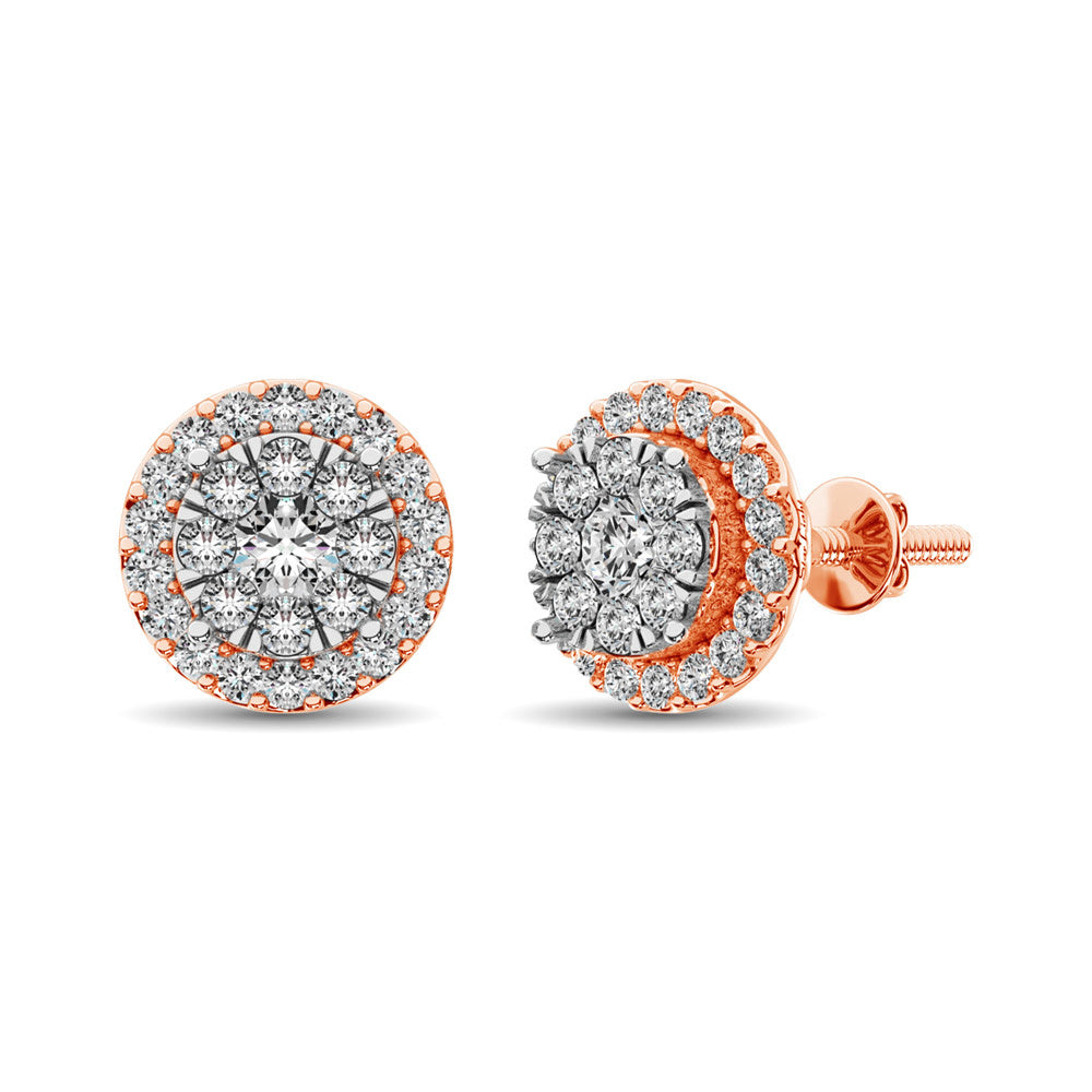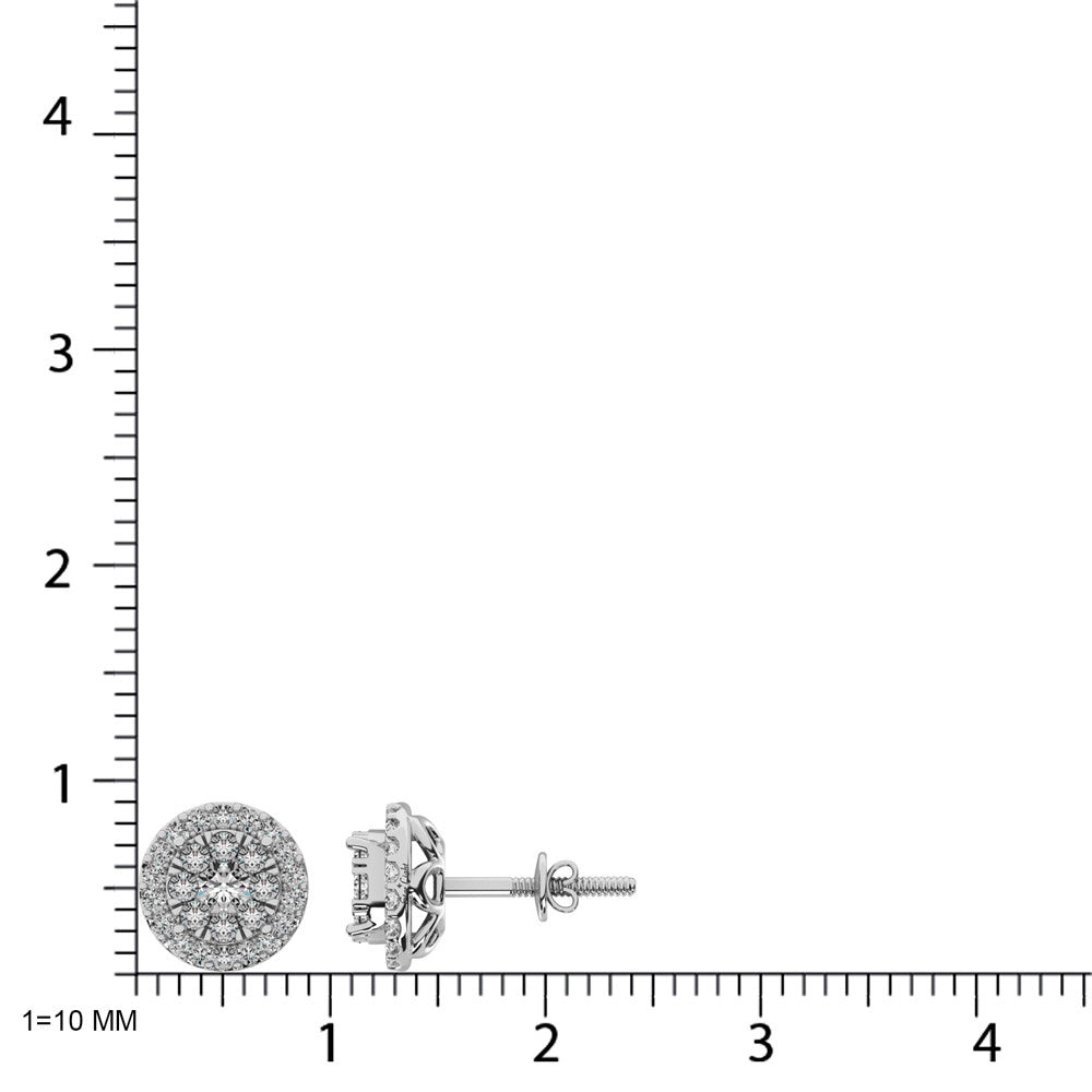 Enhance your jewelry collection with our versatile Diamond Stud Earrings, featuring 0.75 carats of premium diamonds available in Round, Oval, Cushion, Pear, or Heart shapes. Crafted in your choice of 14KT White, Yellow, or Rose Gold, these earrings showcase a central dazzling diamond encircled by a halo of smaller diamonds, combining luxury with timeless design.