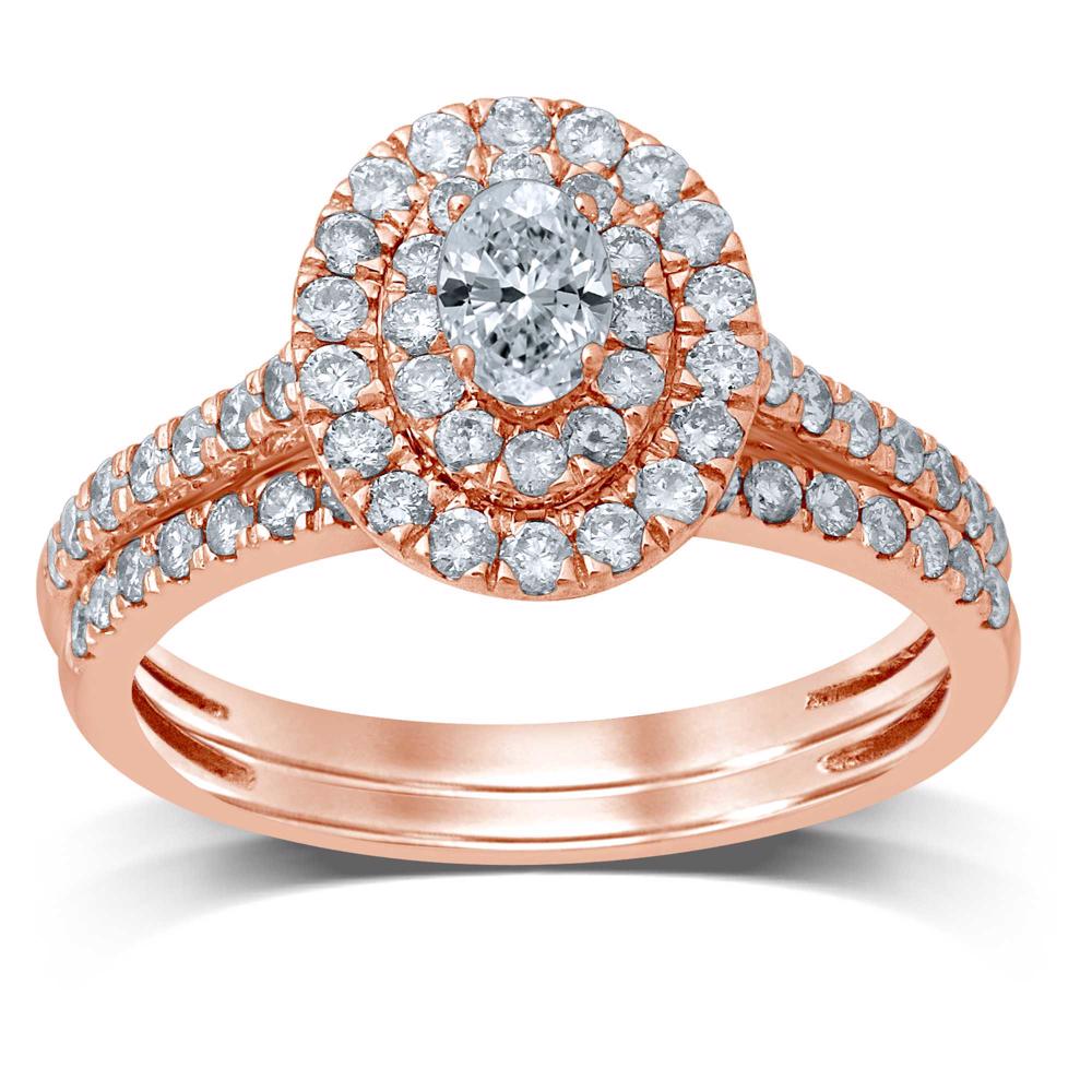 Oval Cut Diamond Ring with Halo - 1.00 Carat in 10KT Rose Gold