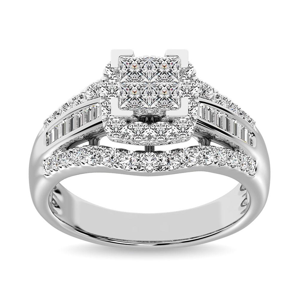 Princess Cut Diamond Engagement Ring with Halo in 10K White Gold