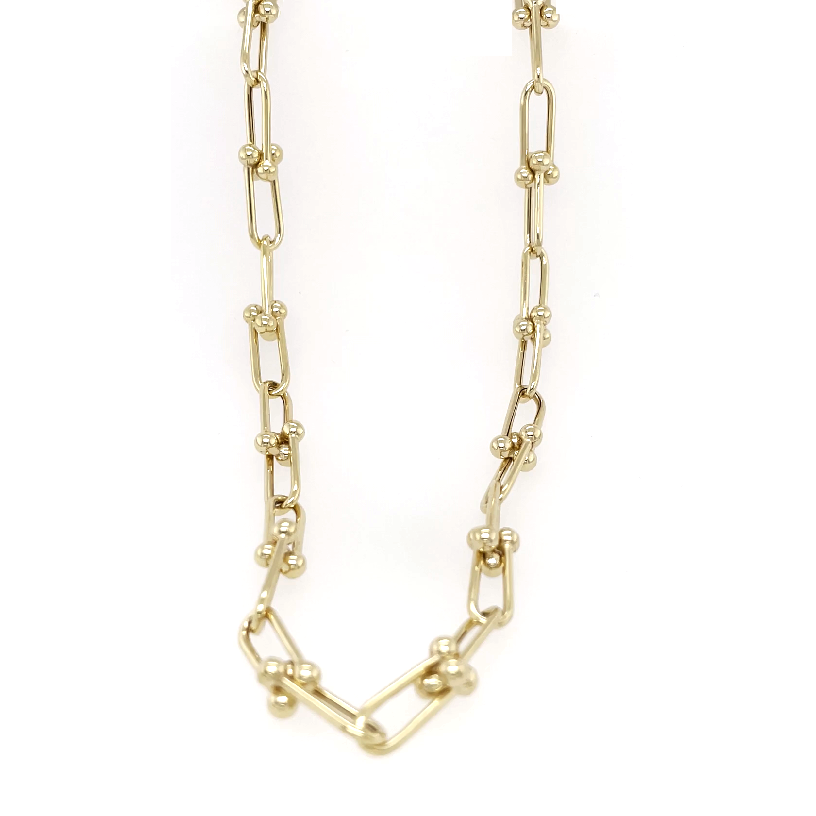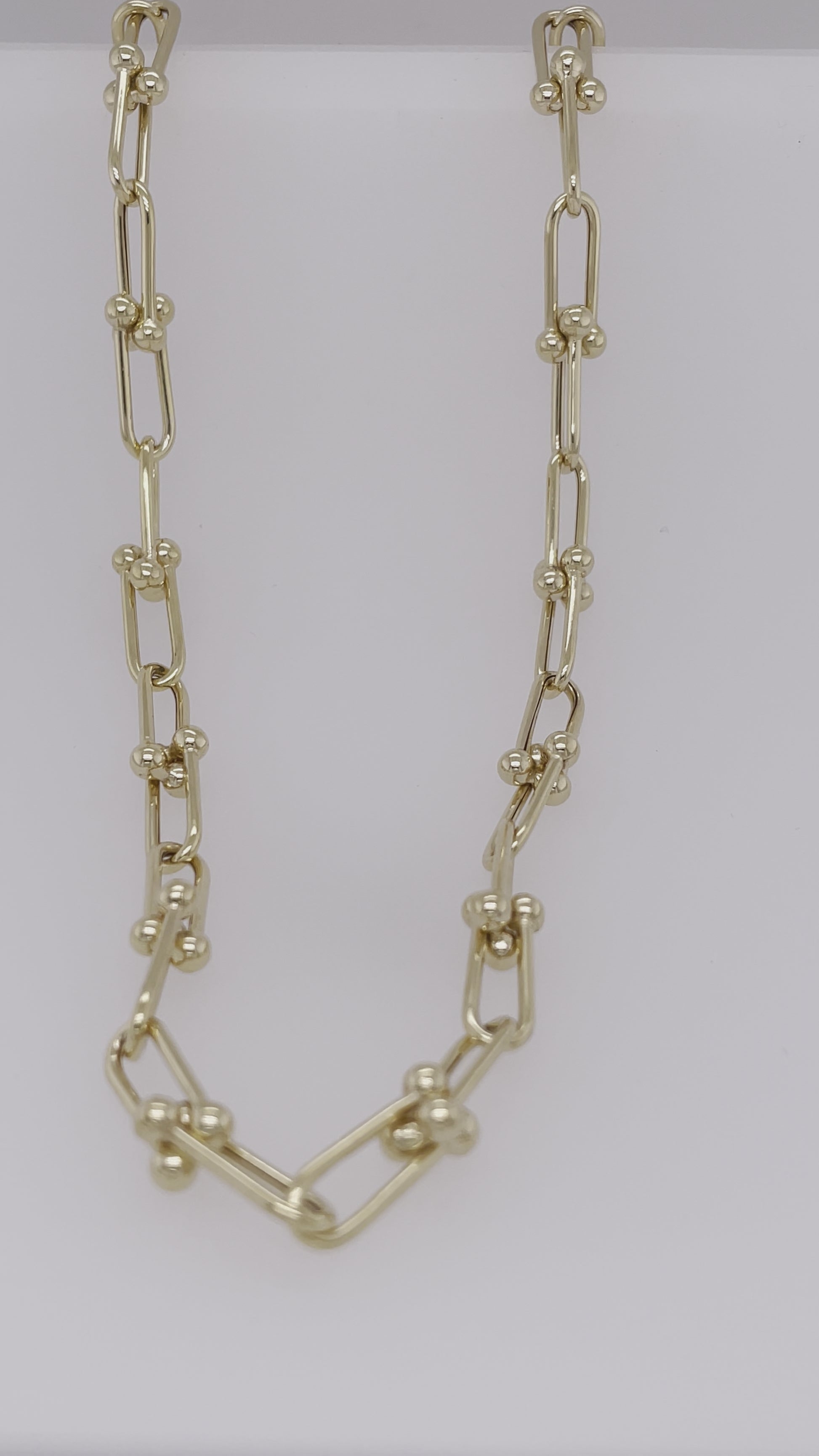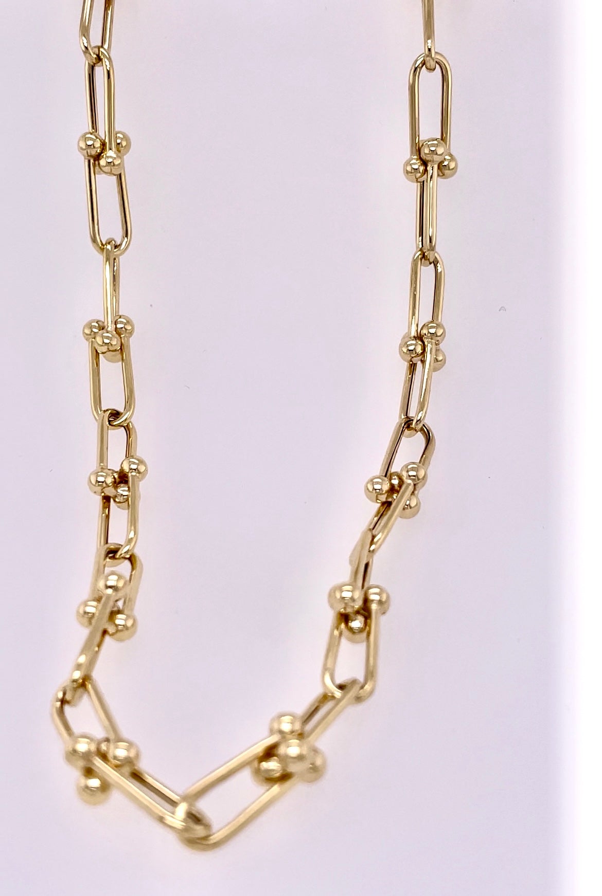 Add timeless elegance to your jewelry collection with our Tiffany Inspired Gold Ball and Chain Necklace. This classic piece is beautifully crafted in lustrous yellow gold, featuring a distinctive ball and chain design that mimics the iconic Tiffany style. Versatile and stylish, this necklace is perfect for layering with other pieces to achieve a complete and sophisticated look. Whether you're dressing up for a special occasion or adding a touch of glamour to a casual outfit, this necklace is an effortless choice that pairs seamlessly with any wardrobe. With 48 interest-free payments of $19.52, this piece offers both affordability and luxury, making it an essential addition to any jewelry lover's collection.