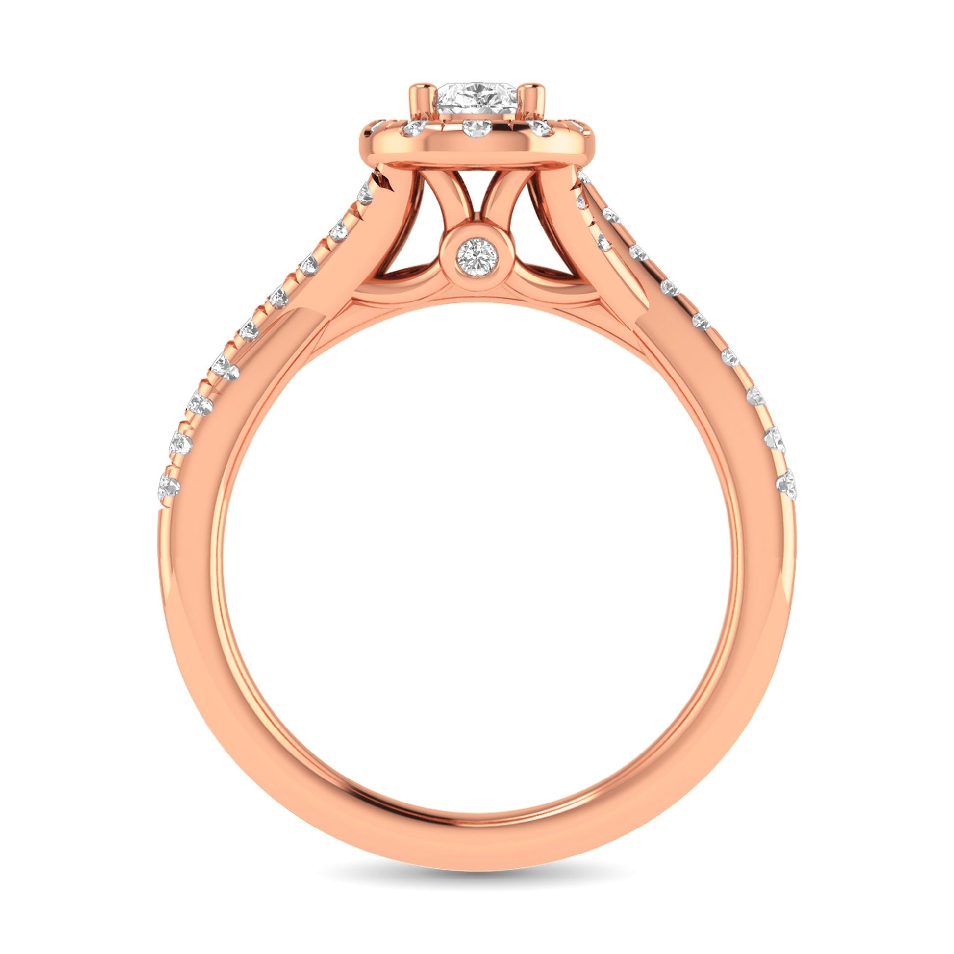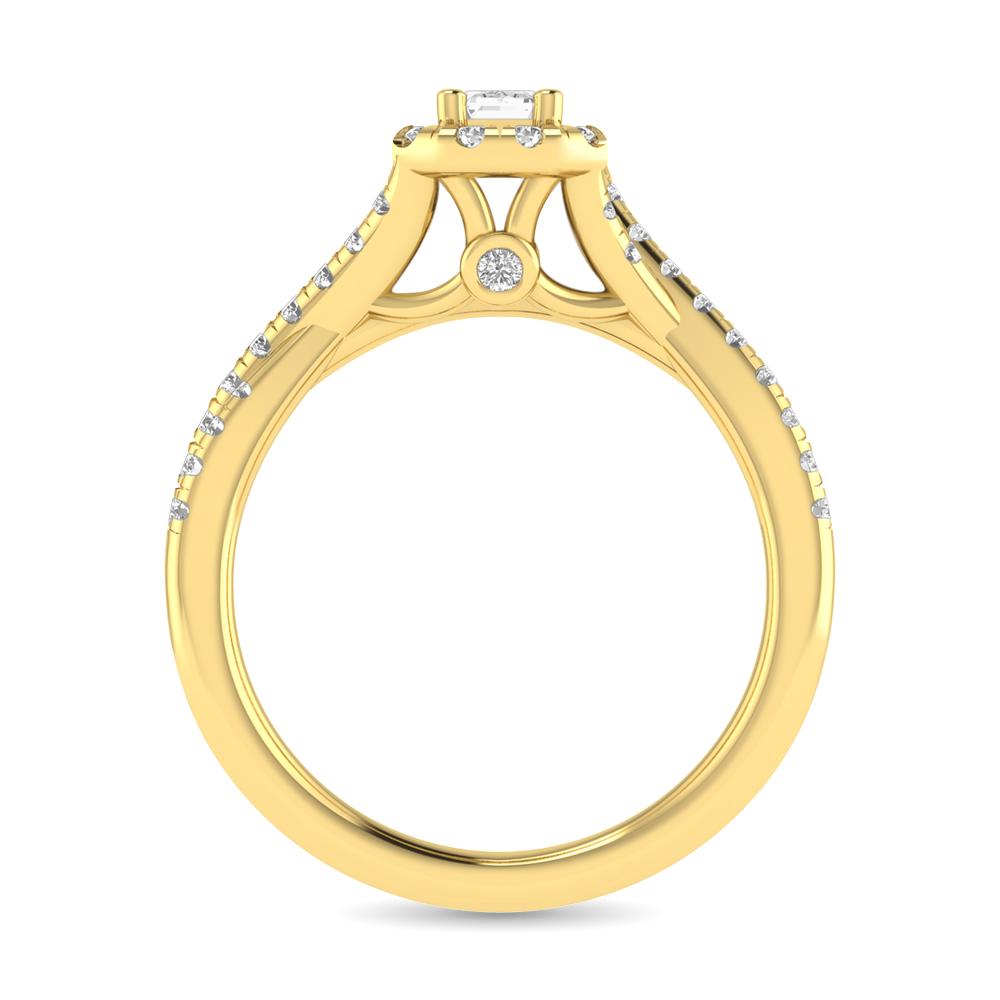 Our Twist Shank Single Halo Bridal Ring offers a captivating blend of traditional charm and contemporary flair. Crafted in 14K Gold, this exquisite ring is available in White, Yellow, or Rose Gold, ensuring a perfect match for every preference. Centered around a stunning 1/3 carat Round Cut solitaire, this ring features a total diamond weight of 1.00 carats, including a halo and additional stones along the twist shank for enhanced sparkle and allure. Choose from various diamond cuts such as Oval, Cushion, Princess, Pear, or Emerald to personalize your ring to your style. The diamonds, graded SI1-SI2 for clarity and G-H for color, are meticulously chosen for their brilliant sparkle and clarity, making this ring a truly luxurious choice for your special day. With 48 interest-free payments of $68.67, this bridal ring is as affordable as it is stunning, providing a memorable symbol of your love and commitment.