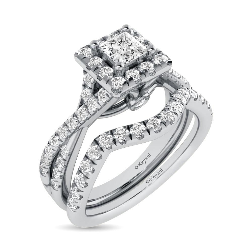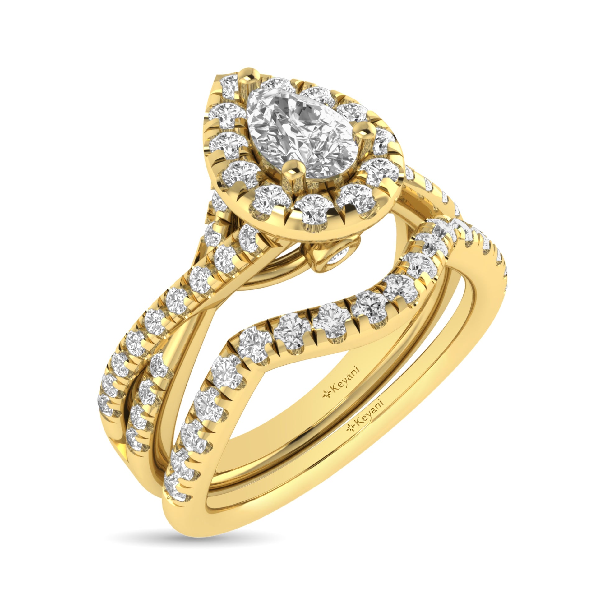 Diamond Twist Shank Single Halo Bridal Ring 1.00 Carat 14K Gold